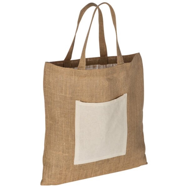 Strong and nice-looking hessian bag with a cotton front pocket, which is the perfect place for your advertising. We will print your logo on the front.